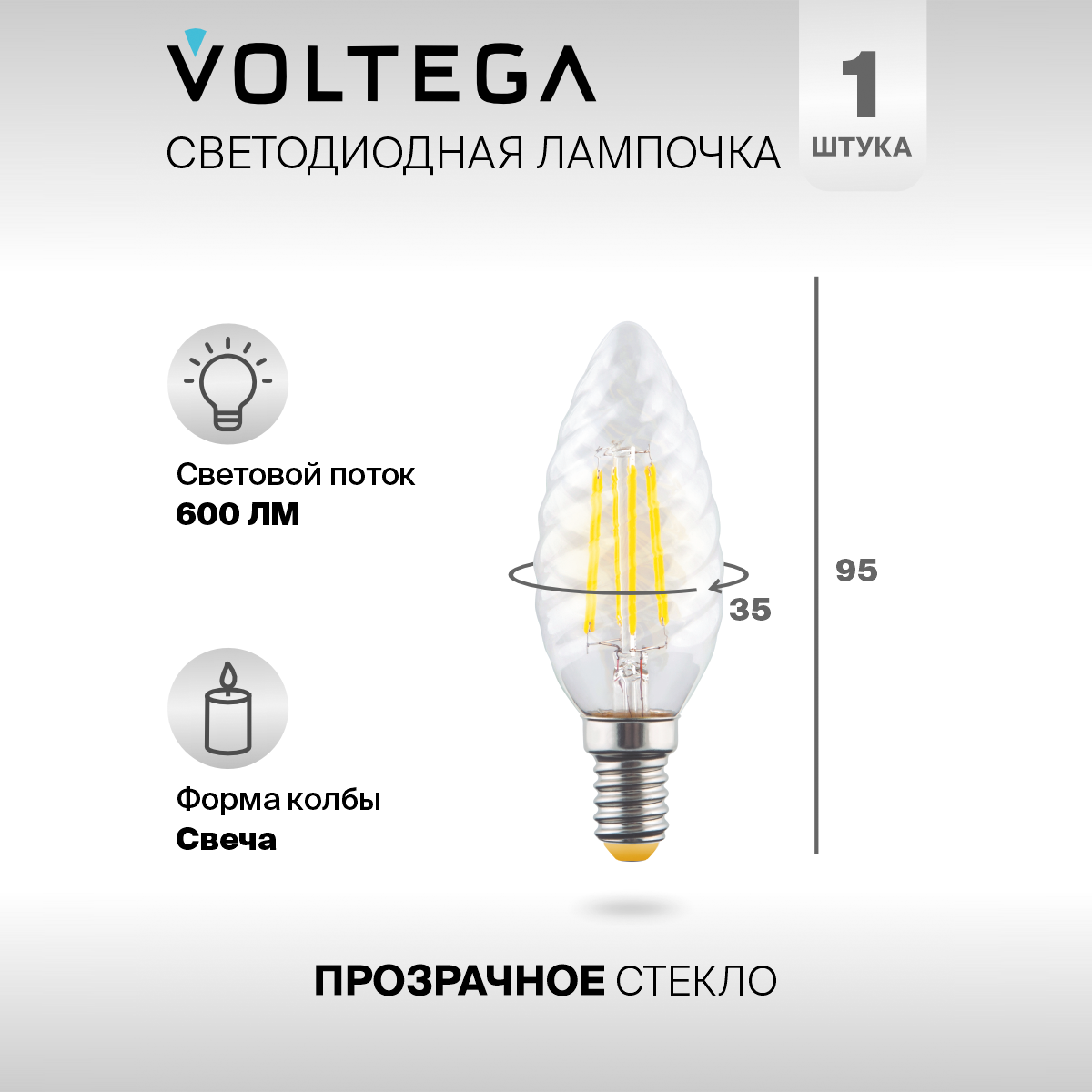 Лампочки Лампочка светодиодная E14 форма свеча на ветру 6W нейтральный свет Voltega Crystal Candle 4000K 1 штука