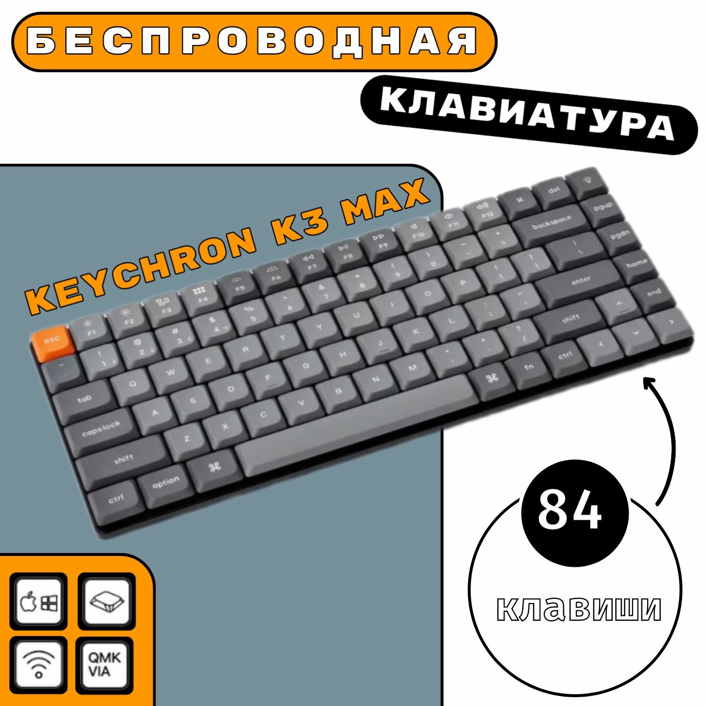 Клавиатуры Беспроводная механическая ультратонкая клавиатура QMK Keychron K3 Max, 84 клавиши, RGB-подсветка, Gateron Brown Switch