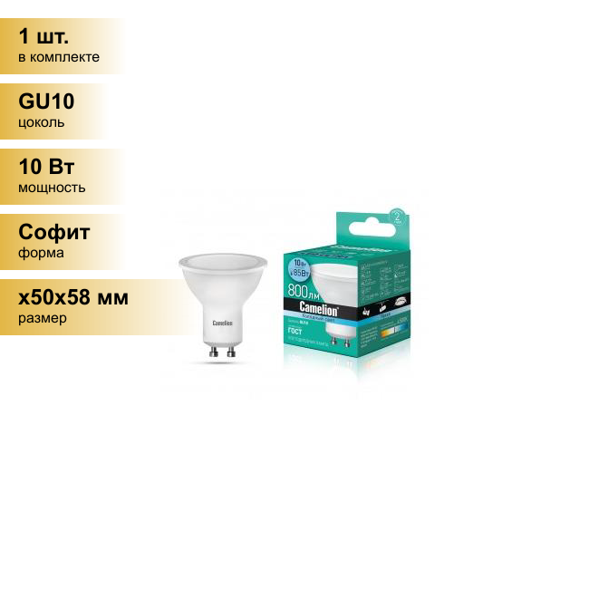 Лампа светодиодная CAMELION (14402) LED10-GU10/865/GU10 10Вт