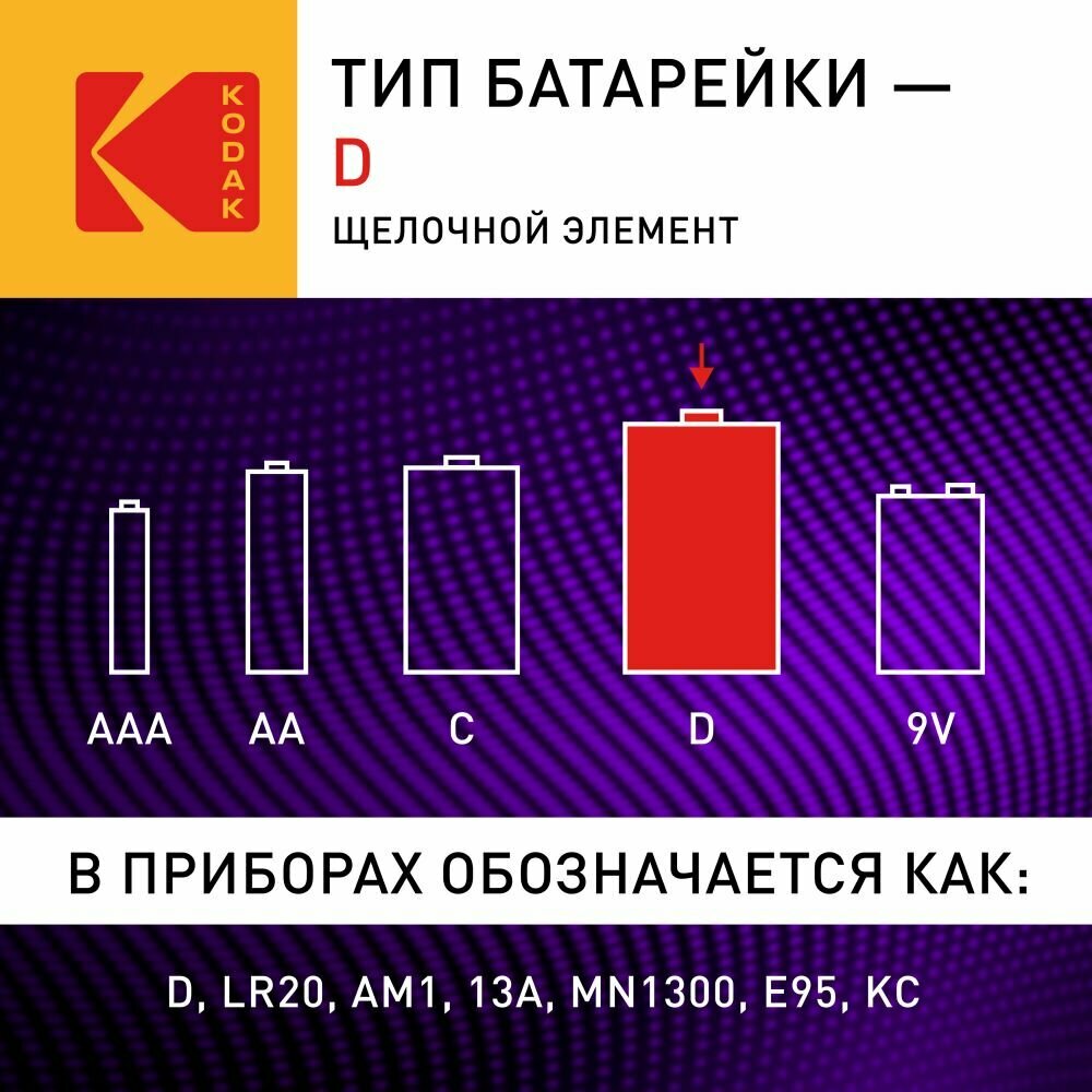 Батарейка Kodak Max Super Alkaline D LR20, 2 шт.