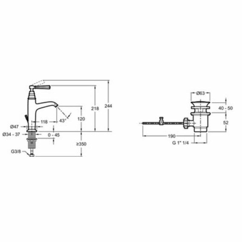 Смеситель Jacob Delafon Cleo 1889 E24307-CP для раковины с донным клапаном