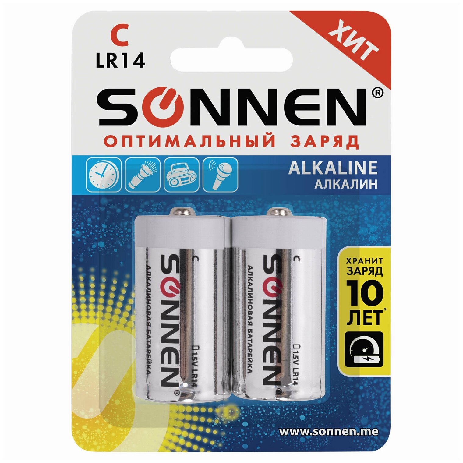 Батарейки Комплект 2 шт., Sonnen Alkaline, С (LR14, 14А), алкалиновые, блистер, 451090