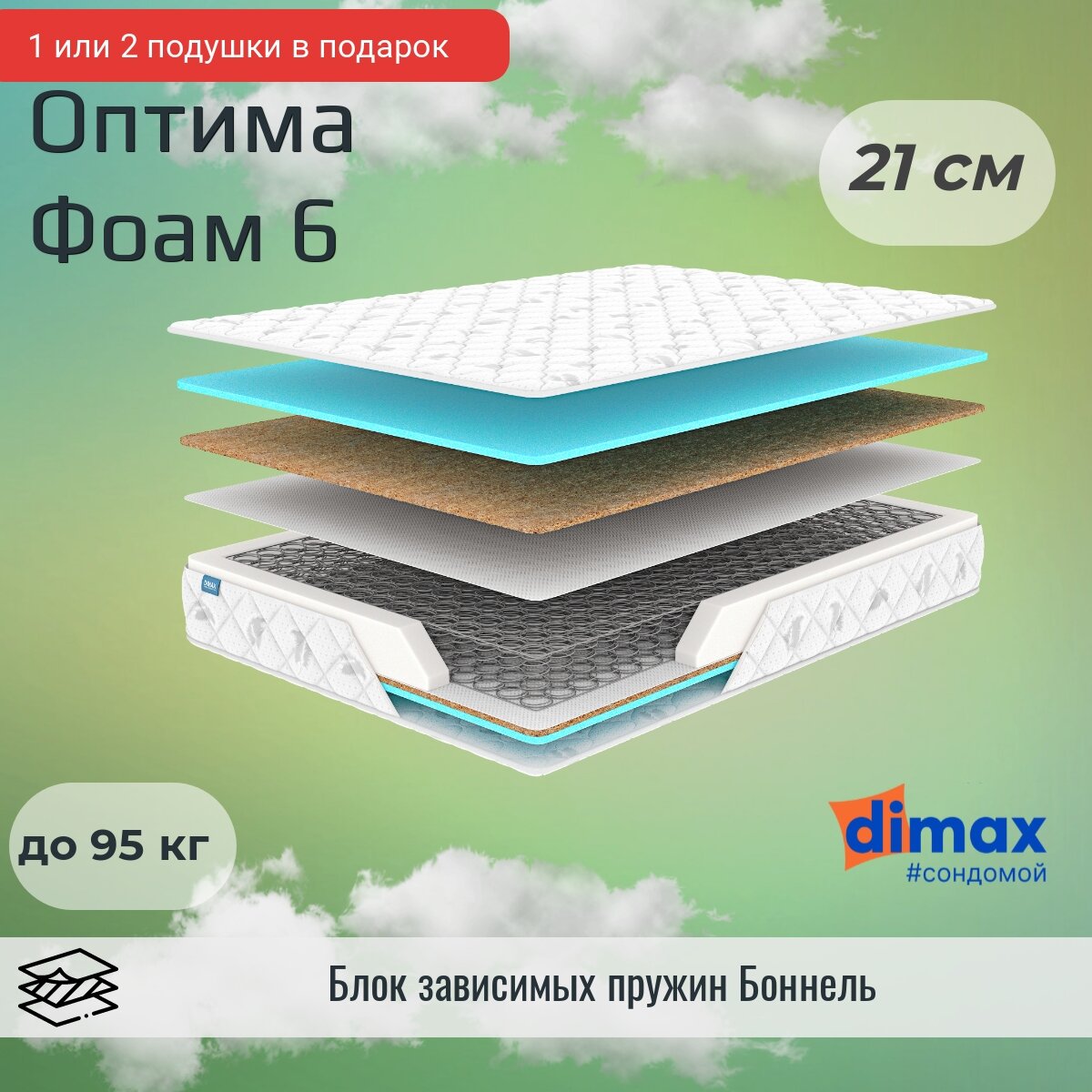 Матрас Dimax Оптима Фоам 6, 95x190 см (нестандартный), пружинный 10 226 ₽ Подробнее
