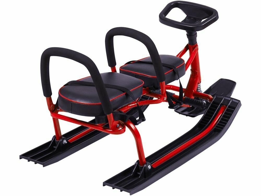 Снегокат 503 TWINS BABY разборный для двоих, с двумя складными спинками, красный