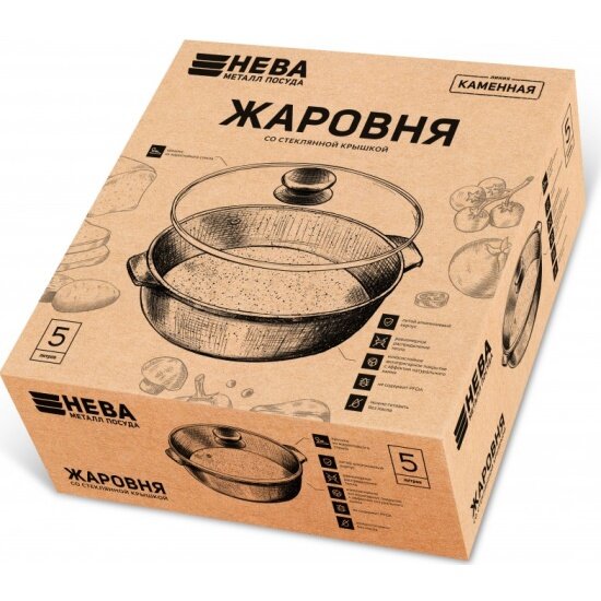 Нева металл посуда 186550 Жаровня со стекл. крышкой 5л "Каменная" Черный гранит