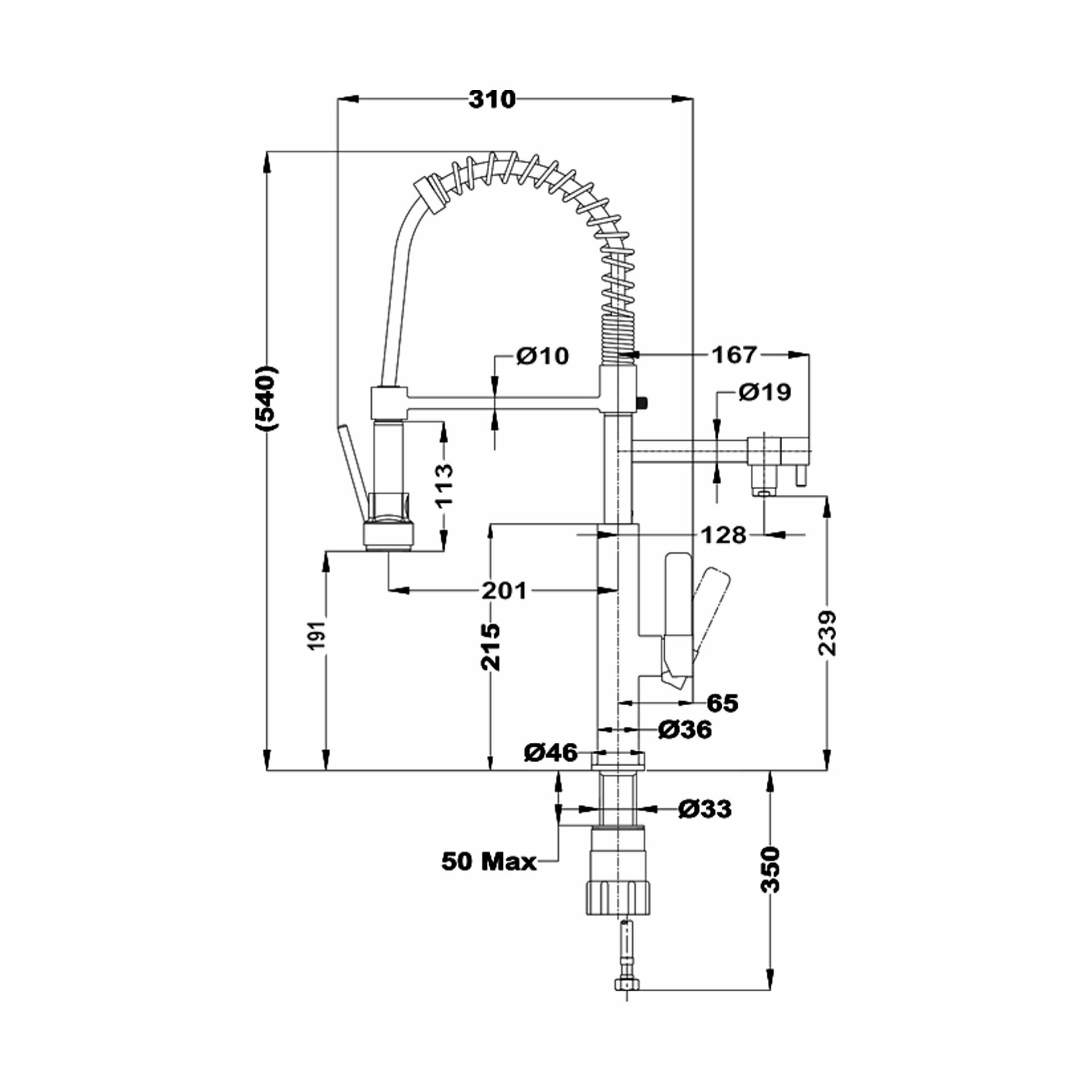| Высота смесителя | 540 мм |