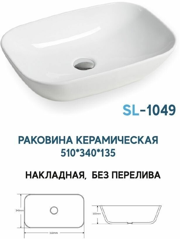 Раковина накладная SantiLine SL-1049 51 см