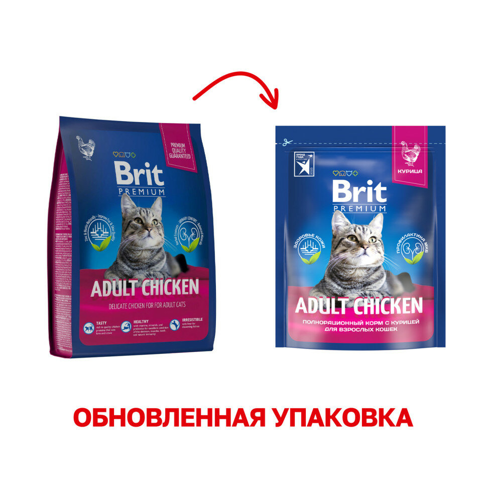 Сухой корм BRIT PREMIUM CAT ADULT CHICKEN для взрослых кошек с курицей (2 кг)