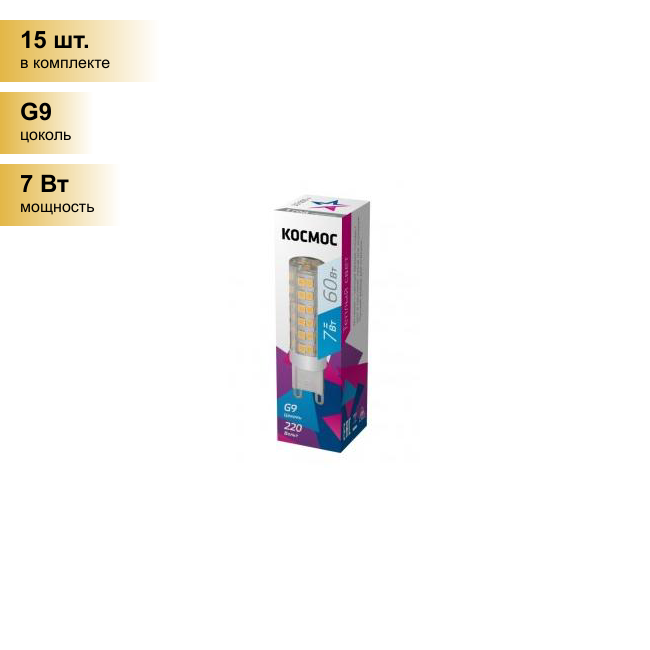 Лампочки (15 шт.) Светодиодная лампочка Космос G9 7W(540lm) 4500K 4K 52x16 LksmLED7WG9C4500pc . Цоколь G9