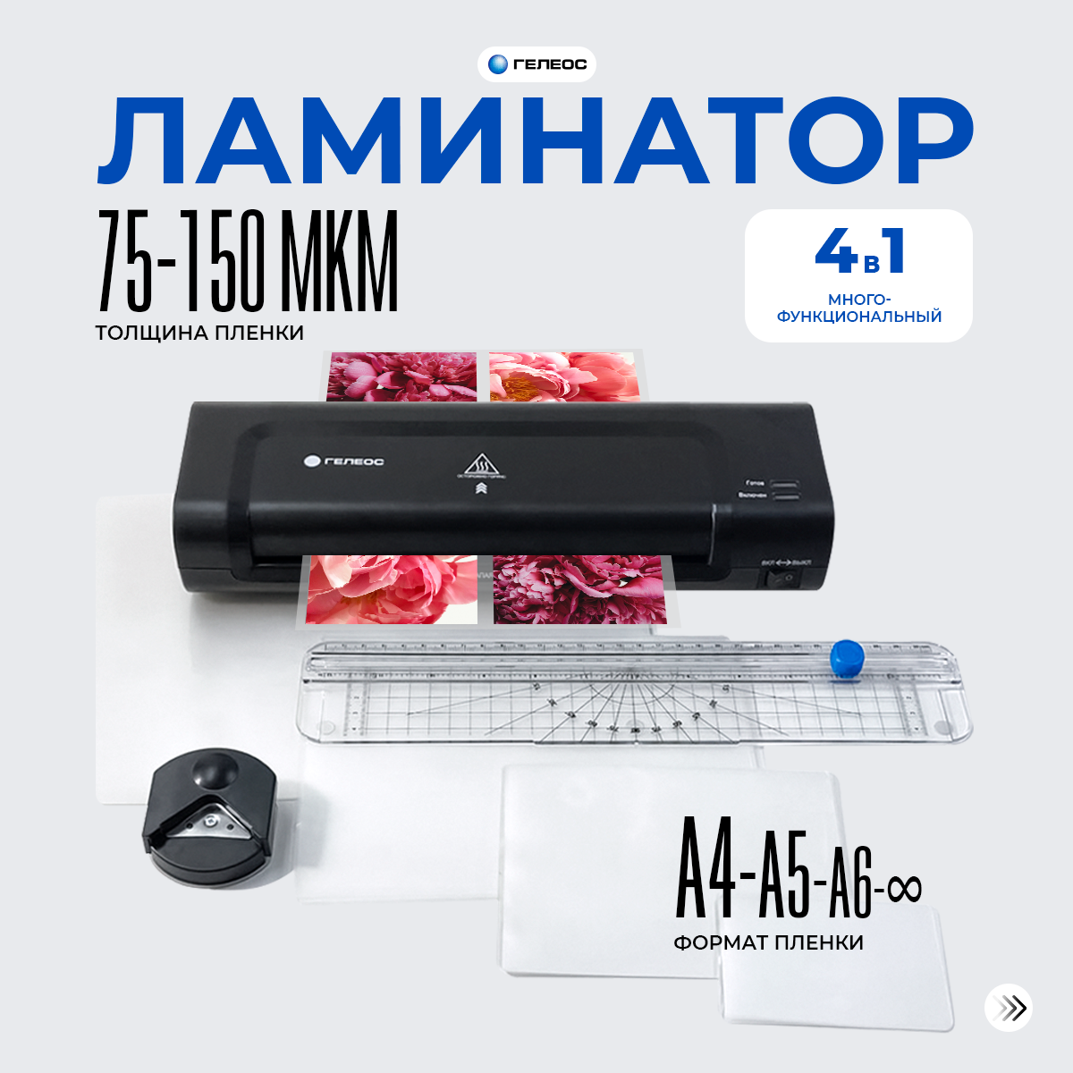 Ламинатор Гелеос ЛМ A4 Комбо (Ламинатор, резак, обрезчик углов, набор пленок)