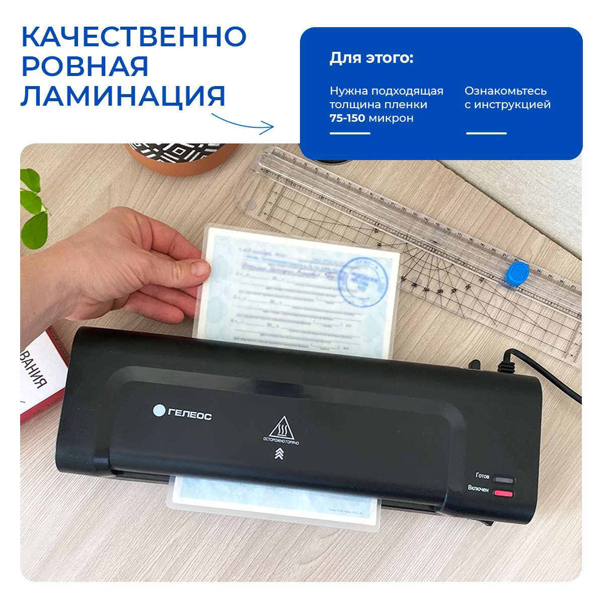 Ламинатор пакетный гелеос ЛМ A4 Комбо, формат А4, толщина пленки 75-150 мкм