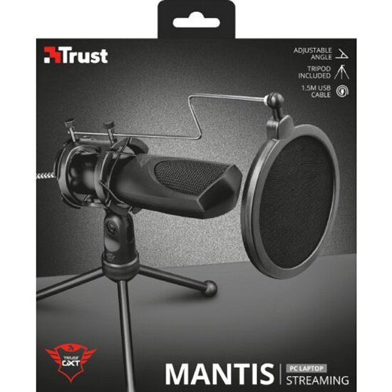 USB-микрофон для потоковых трансляций, подкастов, видеоблогов и дубляжа Trust GXT 232 Mantis, черный