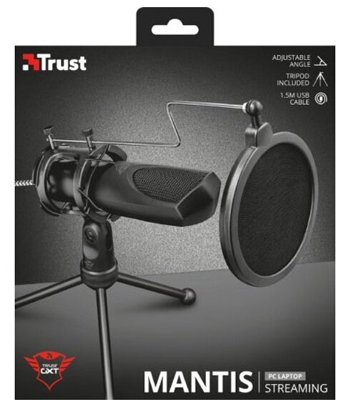 USB-микрофон для потоковых трансляций, подкастов, видеоблогов и дубляжа Trust GXT 232 Mantis, черный