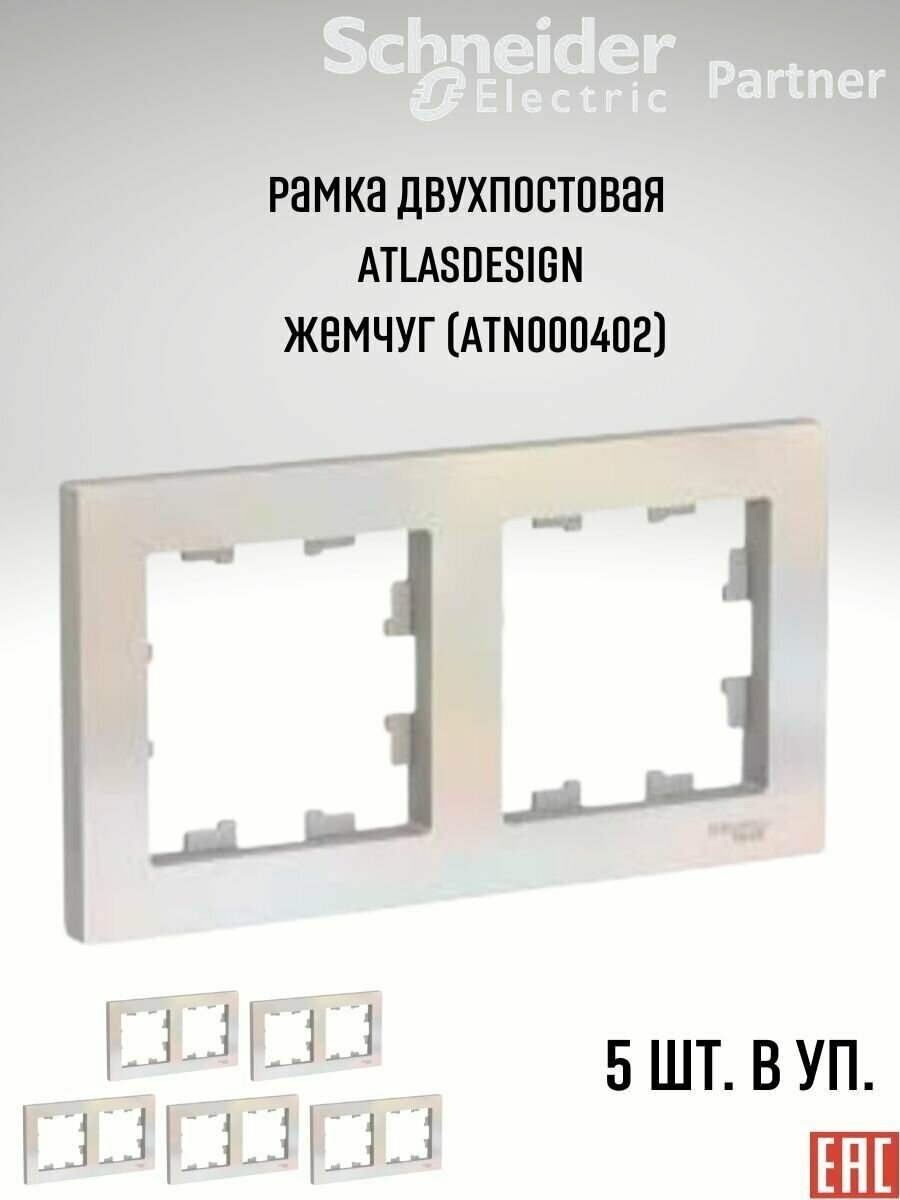 Розетки Рамка двойная для розеток и выключателей Systeme Electric Atlas Design жемчуг ATN000402 - 5 шт.