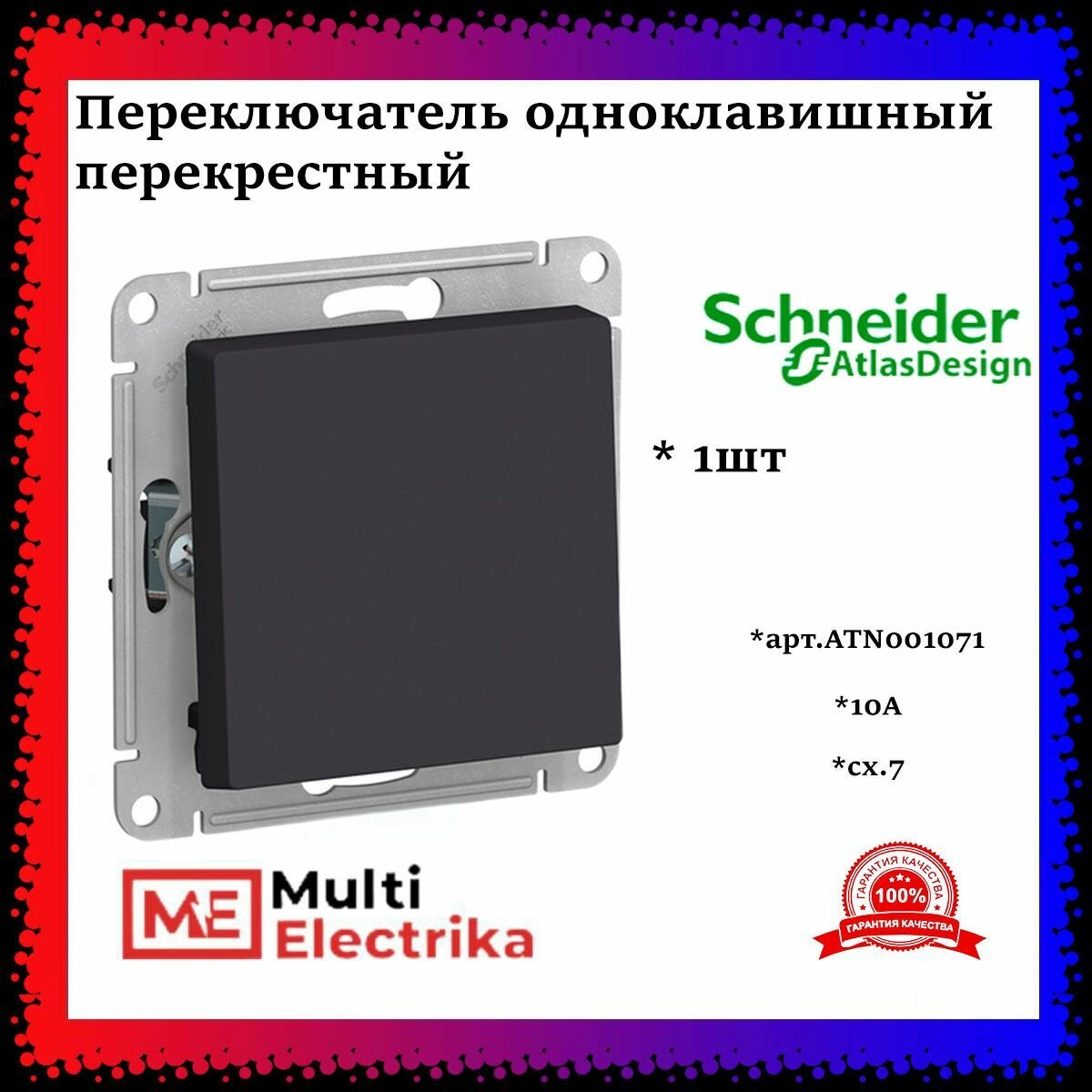 Перекрестный выключатель/переключатель 7шт AtlasDesign 10А одноклавишный Schneider Electric/Systeme Electric механизм скрытая установка карбон ATN001071