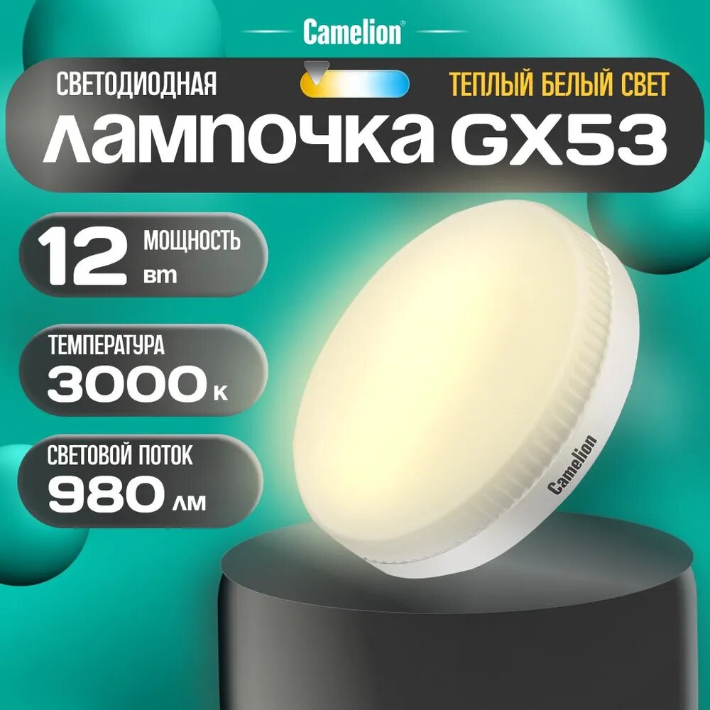 Лампочки Лампа CAMELION GX53 12Вт 3000K 980Лм 220В LED12-GX53/830 12786, светодиодная, теплый белый
