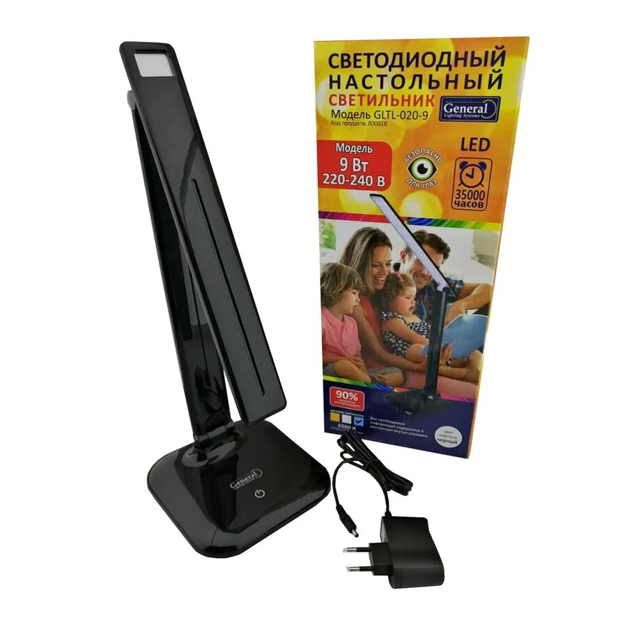 Настольная лампа General, Светильник настольный, Цвет товара черный, Крепление Настольное, Тип цоколя LED, От сети 220В, Цветовая температура 6500К