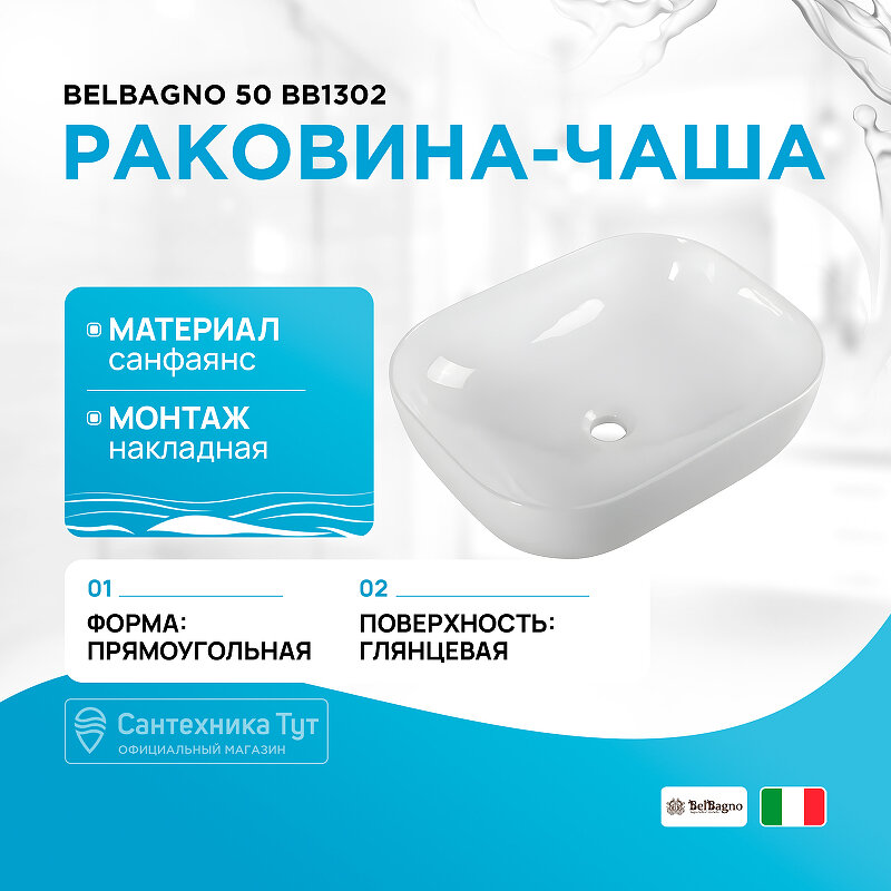 Раковина BelBagno BB1302 50 5 390 ₽ Подробнее