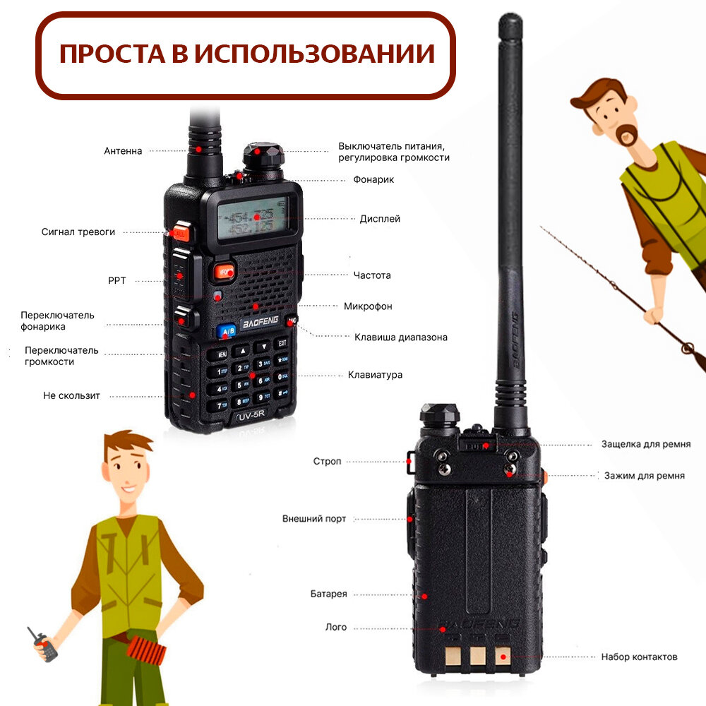Рации Рация Baofeng UV-5R (8W) Черная 2 режима / Портативная радиостанция Баофенг для охоты и рыбалки с аккумулятором на 1800 мА*ч и радиусом 10 км