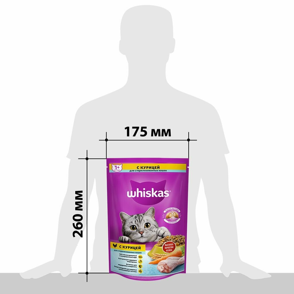Корм для кошек Сухой корм WHISKAS для стерилизованных кошек, с курицей и вкусными подушечками, 350г*3штуки