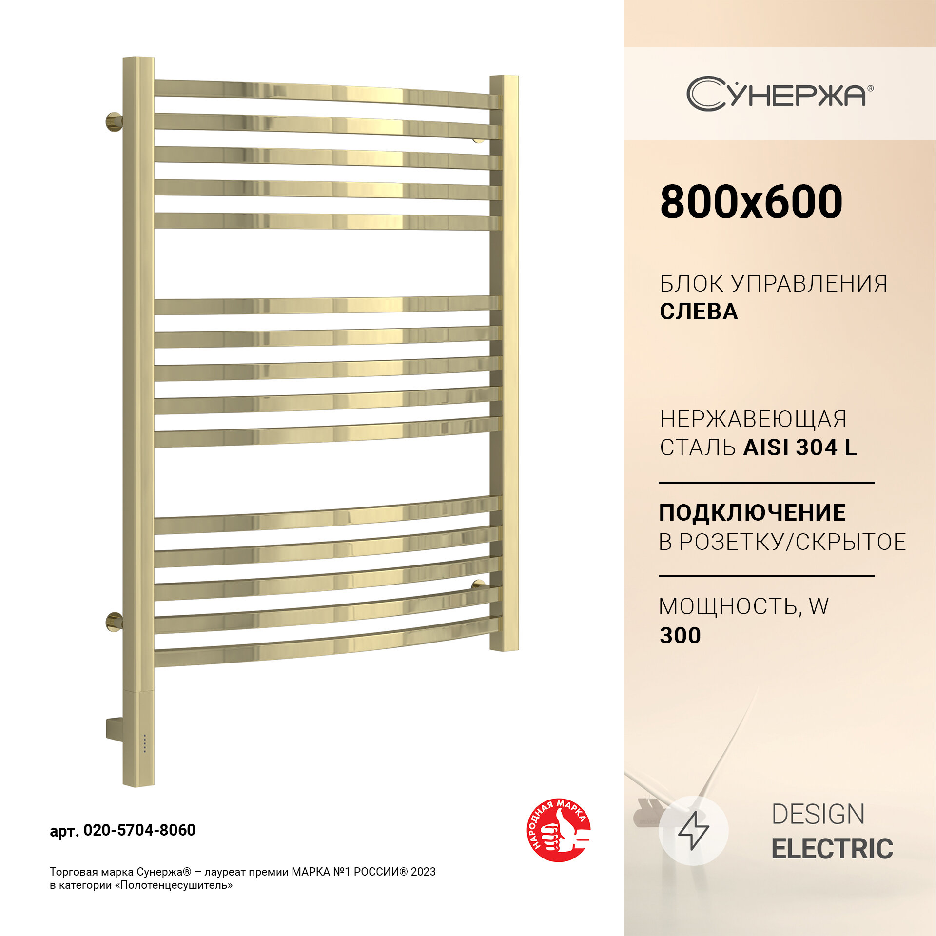 Полотенцесушители Полотенцесушитель электрический Сунержа Аркус 3.0 800х600 МЭМ левый Шампань