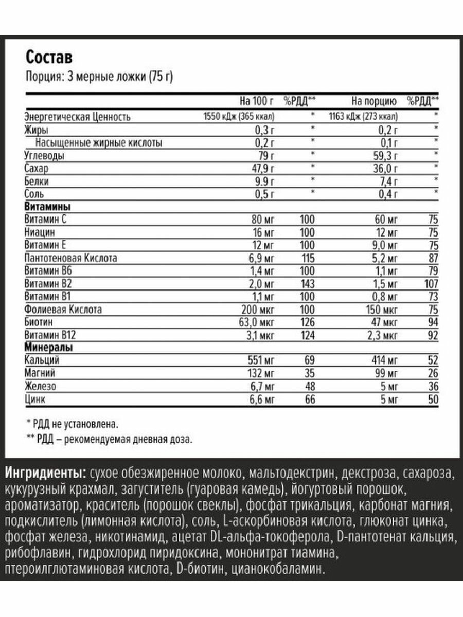 | Добавки | креатин / витаминно-минеральный комплекс (C) |