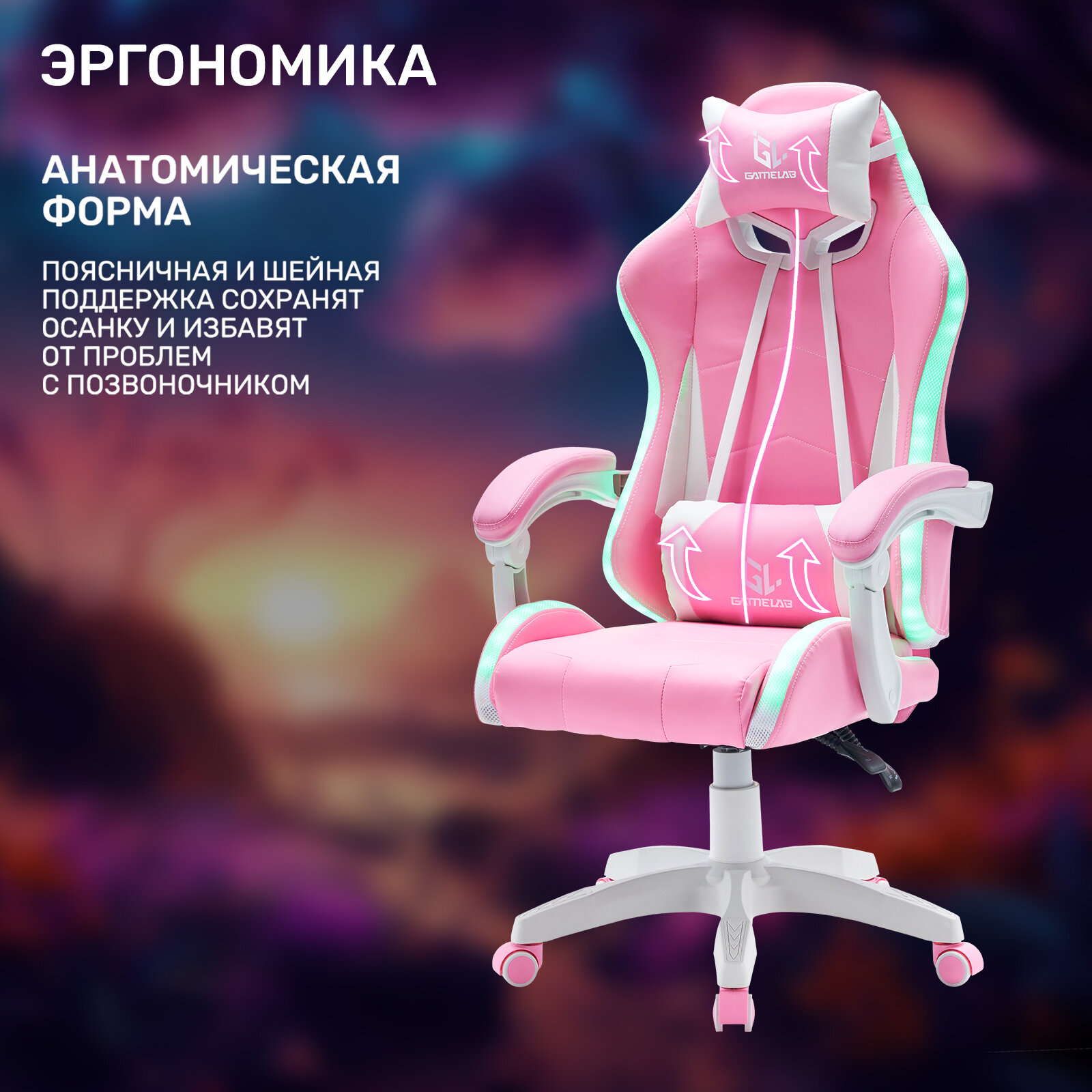 Кресло компьютерное игровое GAMELAB TETRA RGB, Pink 12 990 ₽ Подробнее