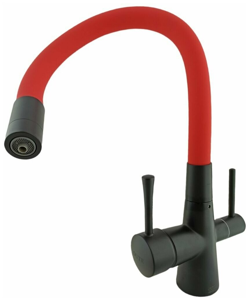 Латун. смеситель под фильтр с гиб. изливом, корпус смесителя черный, излив красный Oute T60003BH-8