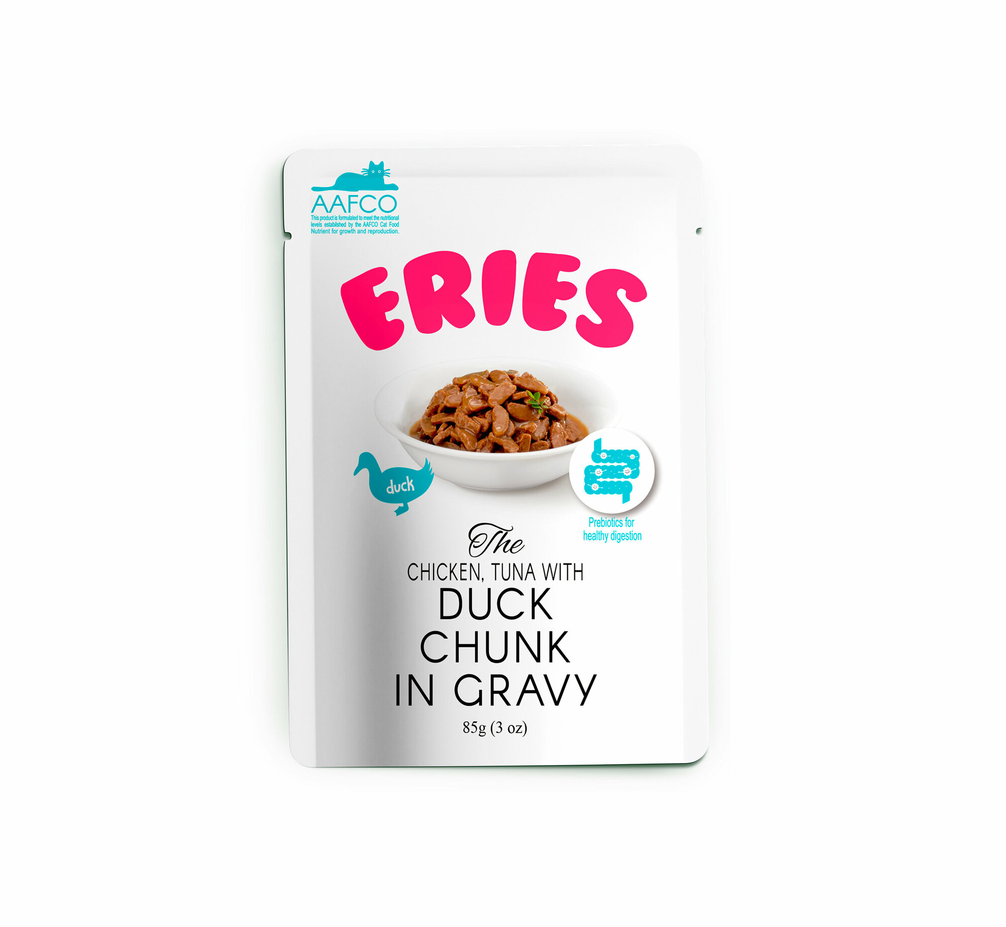 Корм для кошек PETTRIC Eries Duck&Chicken&Tuna Корм влаж.утка с курицей и тунцом кусочки в соусе д/кошек пауч 85г
