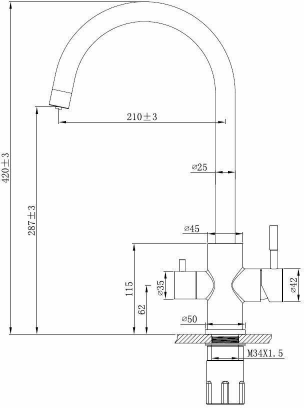 Смеситель для кухни esko r-излив с подключением к фильтру k24