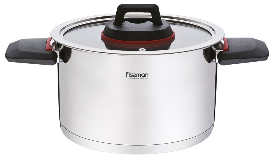 5230 FISSMAN Кастрюля PAULINE 4,6л; 22x12,5 см с крышкой (нерж.сталь) Ручки - бакелит; Крышка - стекло; Индукция; Термоаккумулирующее многослойное дно.