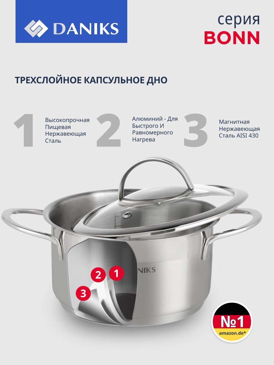 Кастрюля из нержавеющей стали с крышкой Daniks, 2.5 литра 2 022 ₽ Подробнее