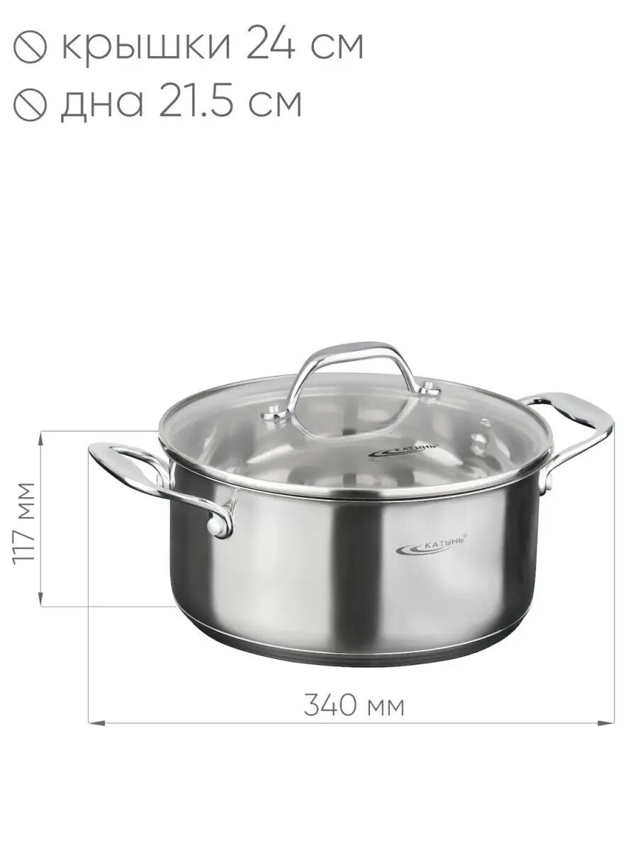 Кастрюля 5,2 л катунь, НИКА, КТ02-D-52, нерж.сталь, зеркальная полировка 2 273 ₽ Подробнее
