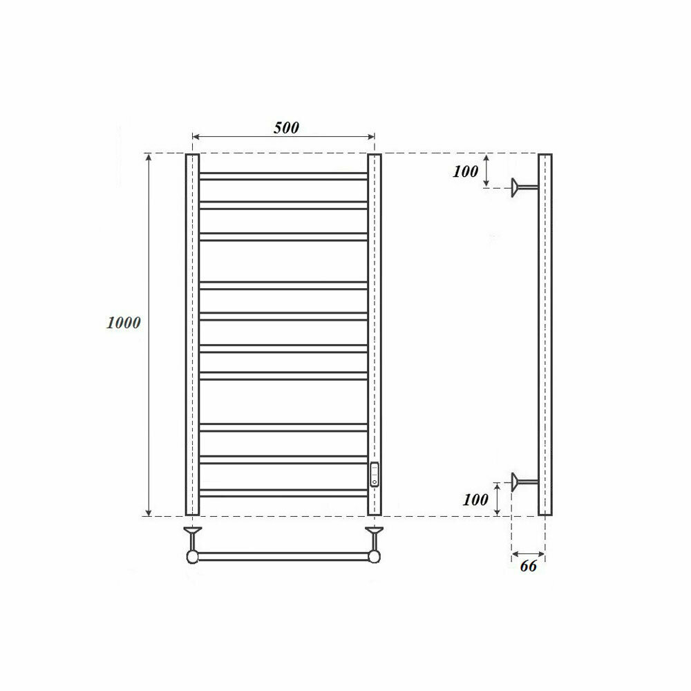 Полотенцесушитель электрический 500x800 POINT Меркурий (PN83858 П6) диммер справа