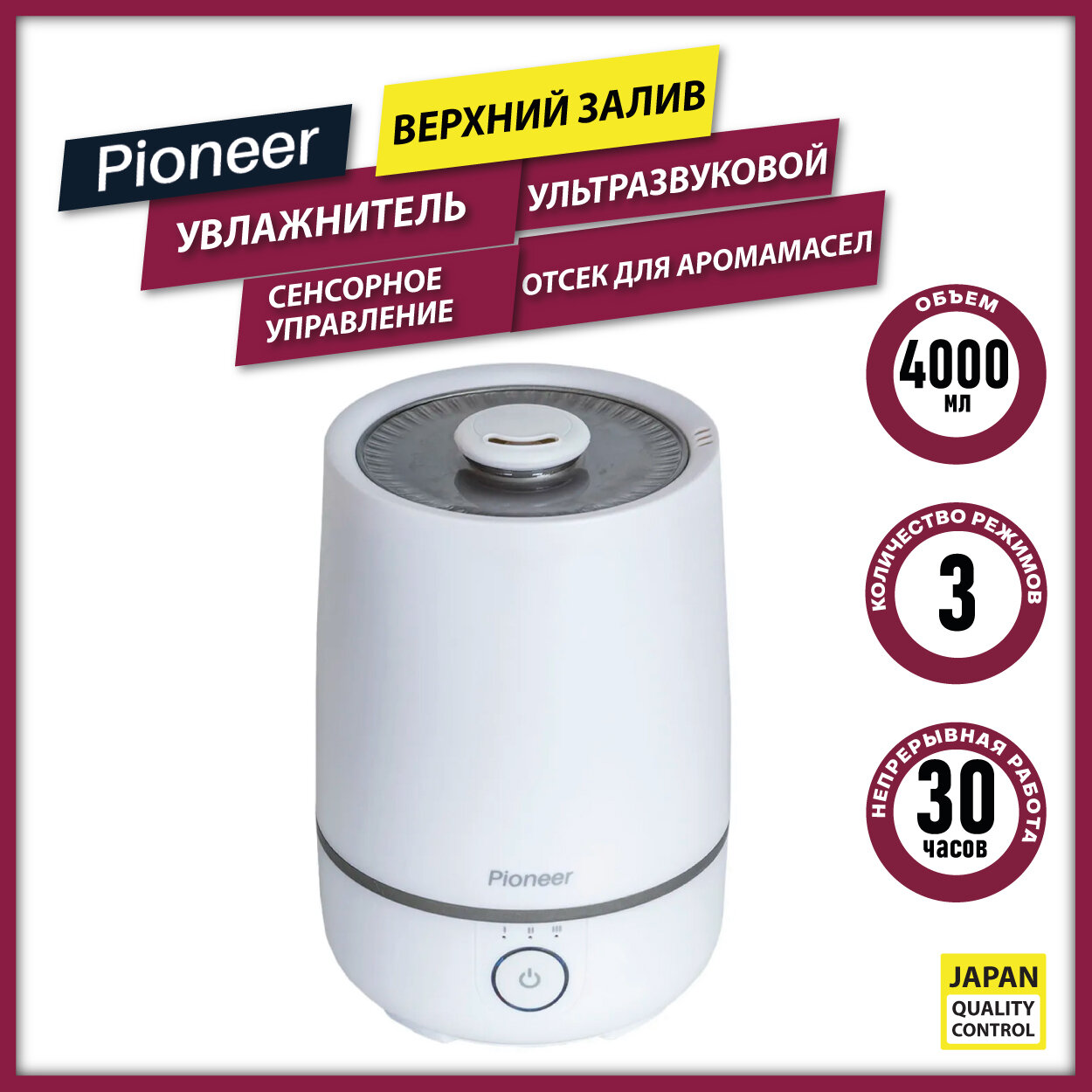 "Увлажнитель ультразвуковой Pioneer с сенсорным управлением, контейнером для аромамасел и 3 режимами парообразования, 30 Вт"