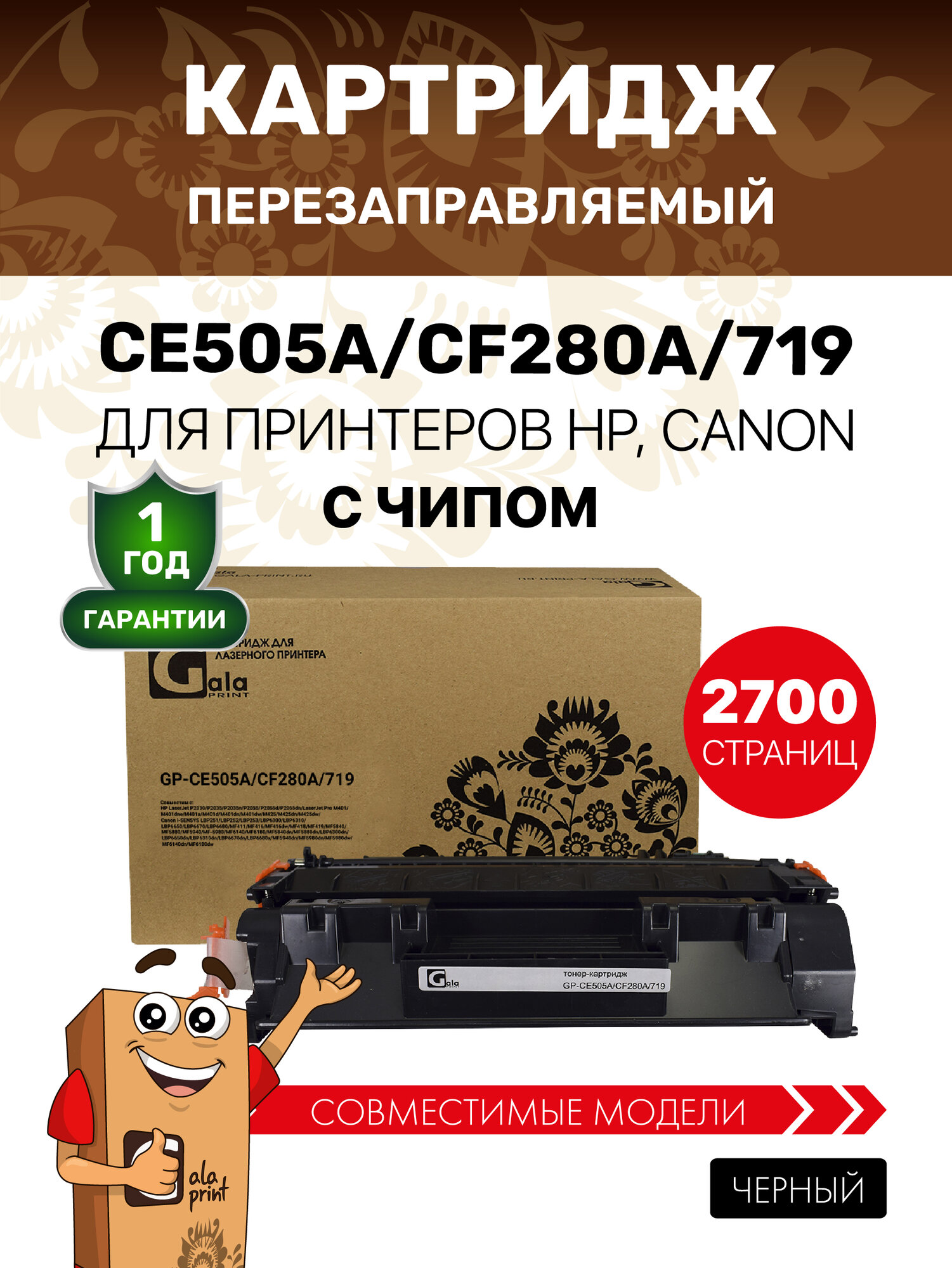 Картридж GalaPrint CE505A/CF280A/719 (HP 05A HP 80A) для принтеров HP P2030/P2035/P2055/M401/M425/Canon LBP251/LBP252/LBP253/LBP6300/LBP6310/LBP6650/LBP6670/LBP6680/MF411/MF416/MF418/MF419/MF5840/MF5880/MF5940/MF5980/MF6140/MF6180 лазерный, совместимый