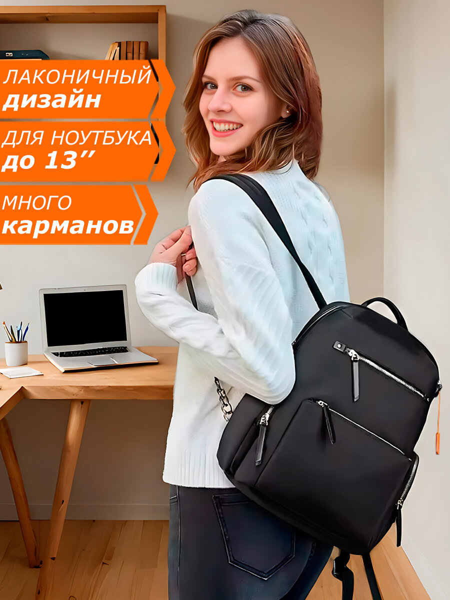 Рюкзаки Рюкзак женский городской дорожный Bopai Women маленький 12л, для ноутбука 13", водонепроницаемый, черный