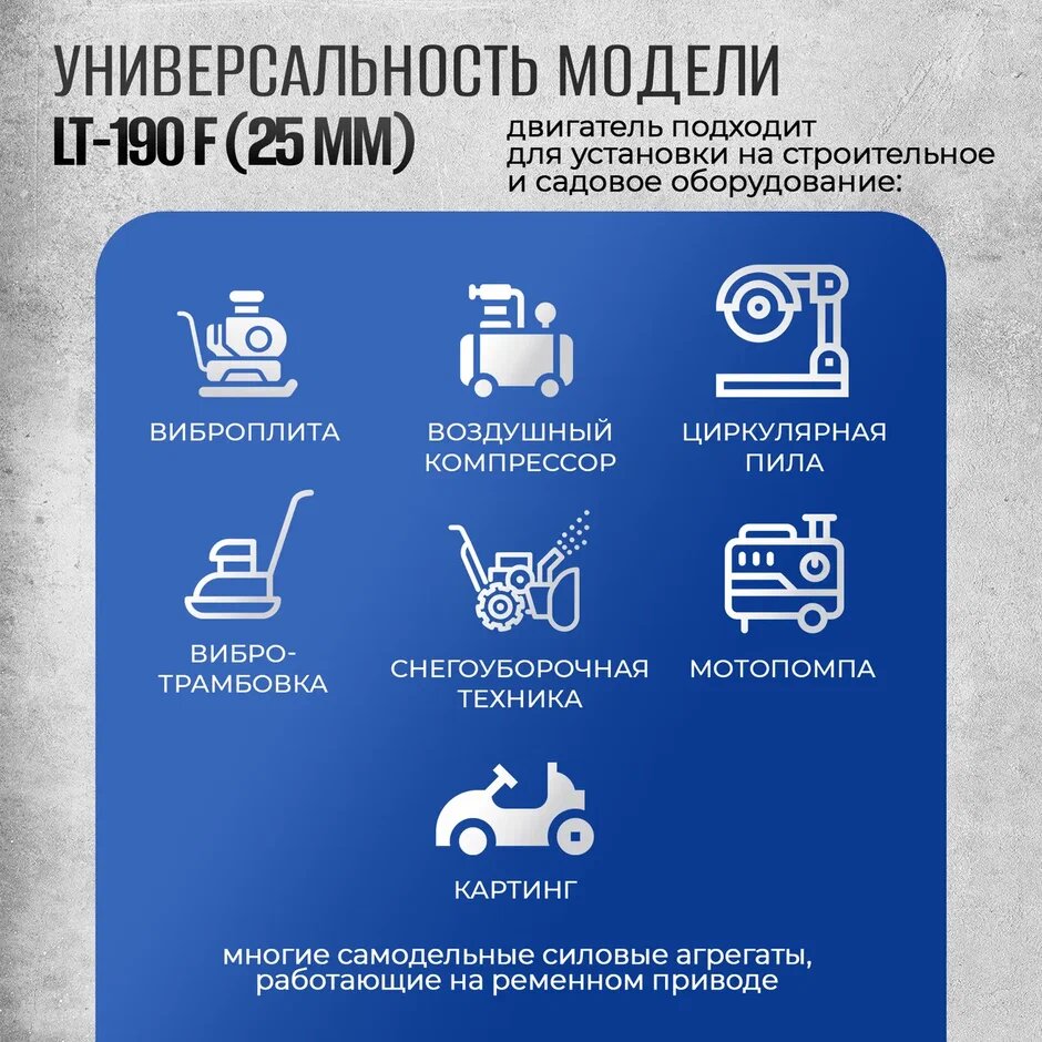 Двигатели Бензиновый двигатель ELECTROLITE LT 190F ( 15 л.с. Вал 25,4 мм, ручной стартер )