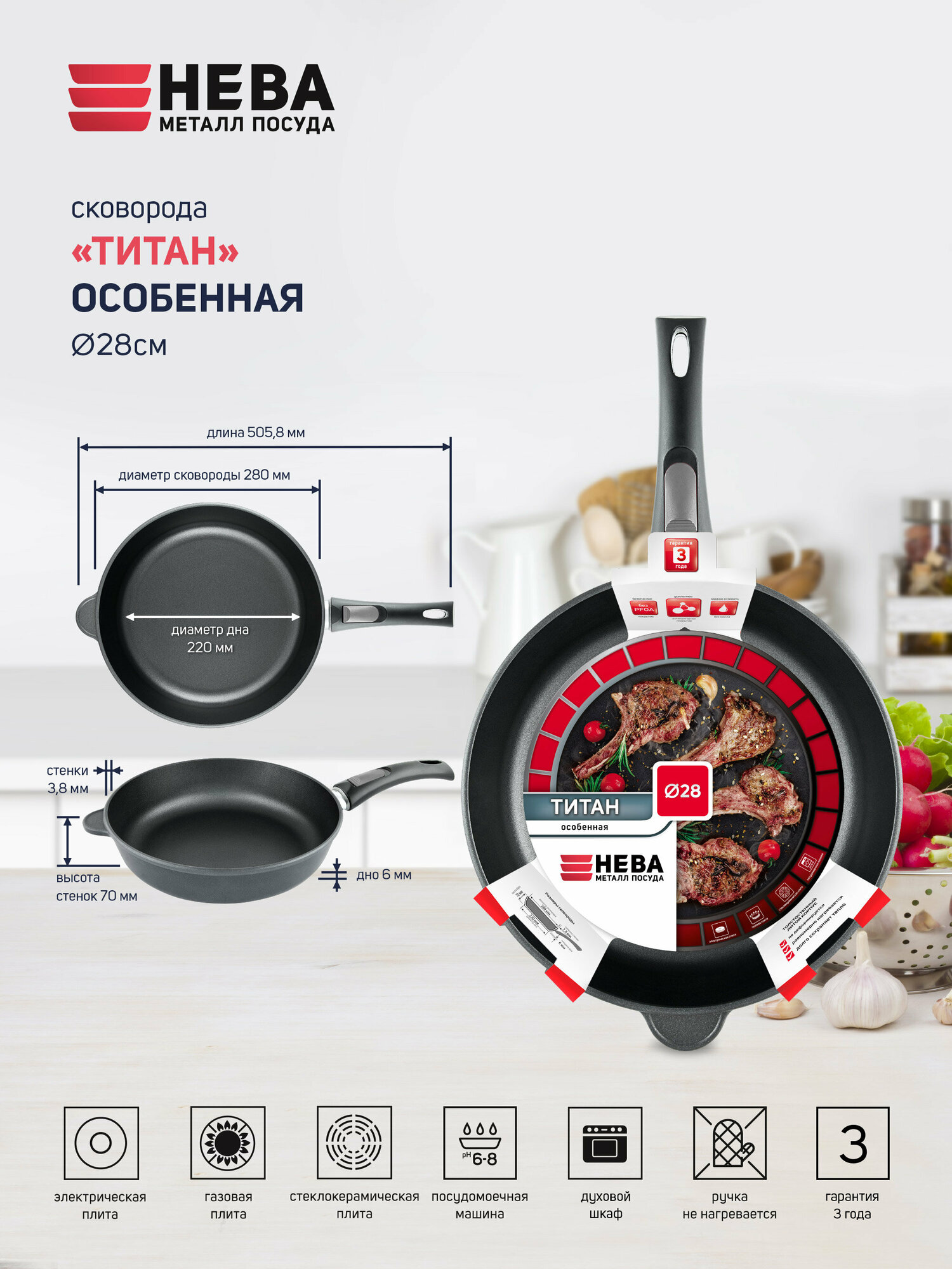 Сковородка Сковорода Нева Металл Посуда Титан "Особенная", 28, съемная ручка