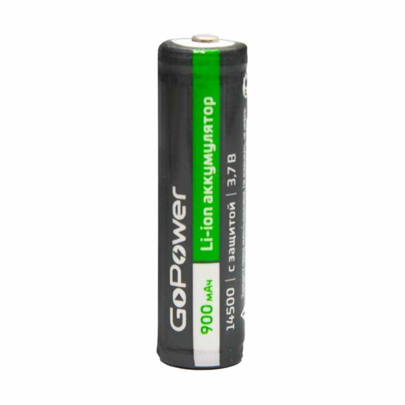Аккумулятор Li-ion 14500 GoPower 3.7В 900мАч с защитой, высокий контакт, в упаковке 1 шт.