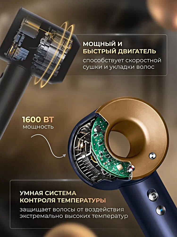 Фен профессиональный/ Самый мощный скорости/ 3 температурных режима / 5 магнитных насадок/Золотой Гарантия качества 2 603 ₽ Подробнее