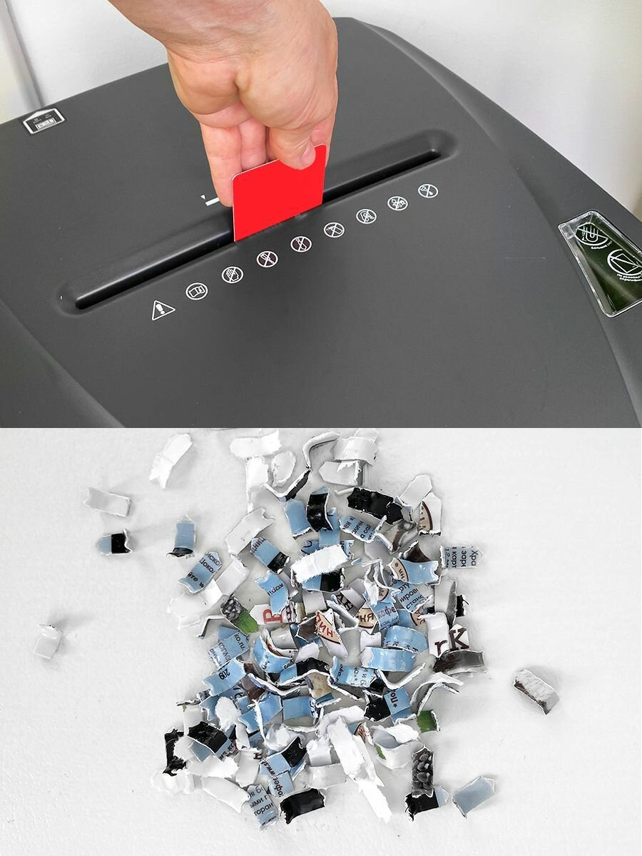 | Уничтожает | степлерные скобыканцелярские скрепкипластиковые карты |