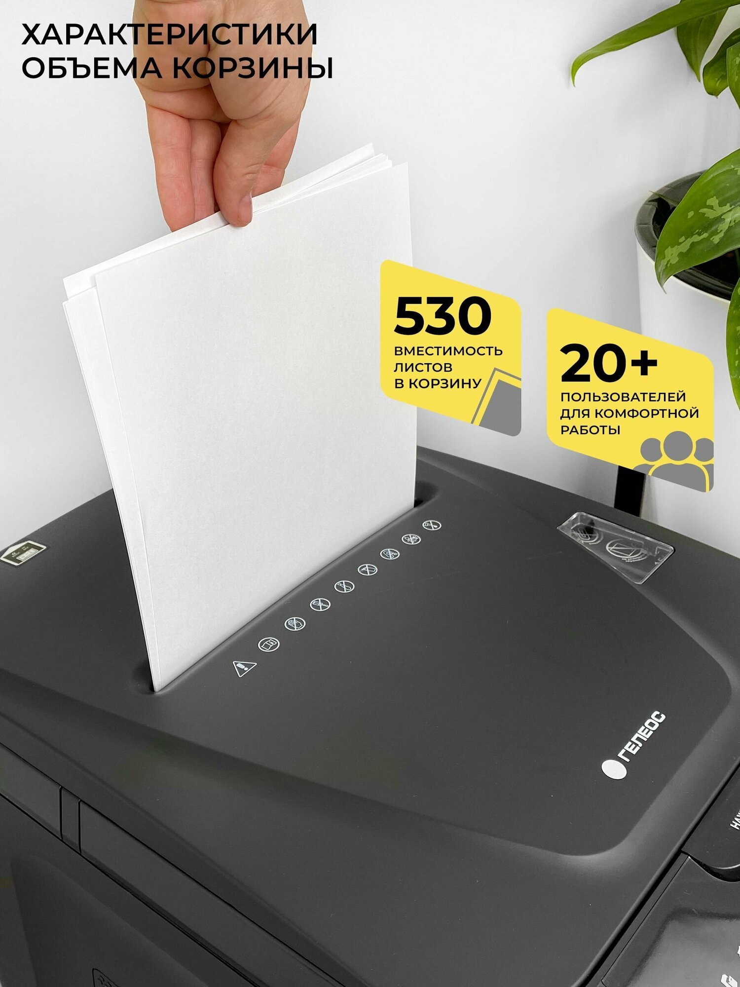 Уничтожитель документов гелеос АП40-4, DIN P-4 (4 ур-нь секр.), фрагмент 3,9х12мм, автоподача 180 лист (70г/м2), пл.карты/скрепки/скобы, 37 литров