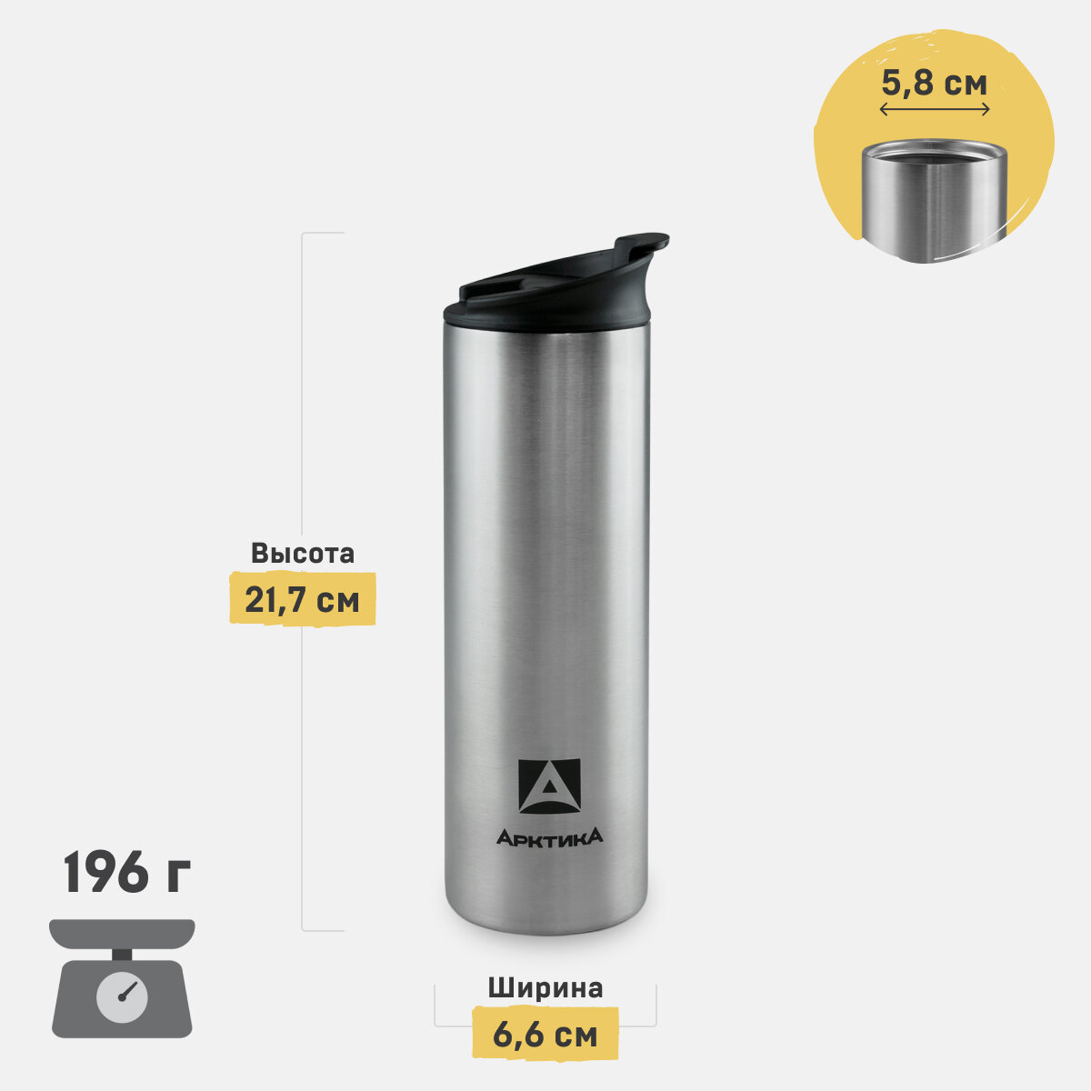 Термокружка Арктика Вакуумный, крышка на резьбе с силиконовым уплотнителем, объем 0.48 л.