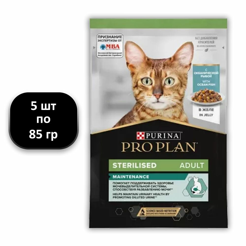 Корм для кошек PRO PLAN STERILISED для взрослых стерил кошек и кастриров котов с океаническ рыбой в желе пауч 85 гр 85 гр х 5 шт