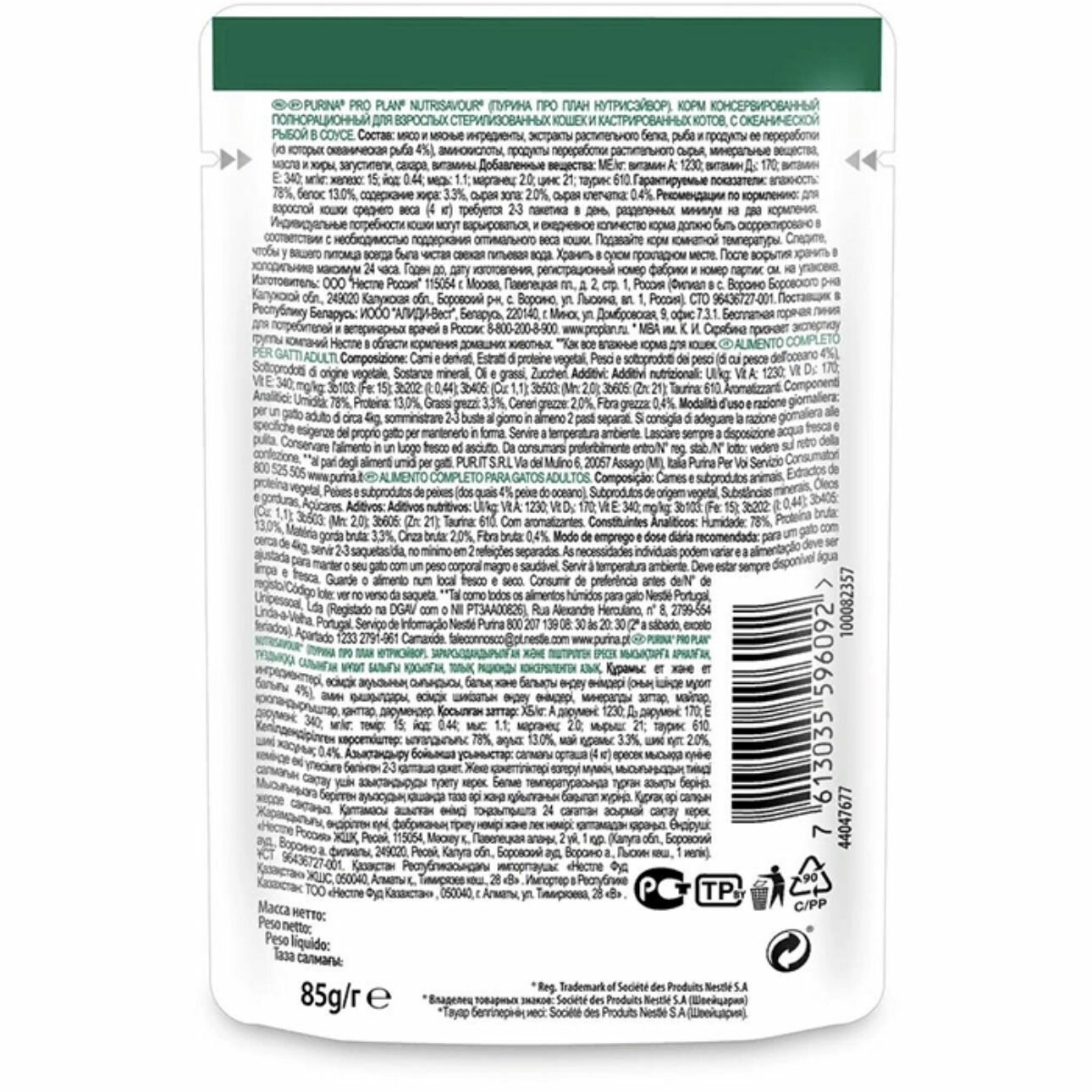 Влажный корм Pro Plan Nutri Savour для взрослых стерилизованных кошек и кастрированных котов, вкусные кусочки с индейкой, в желе, Пауч, 85 гр., 26 шт.
