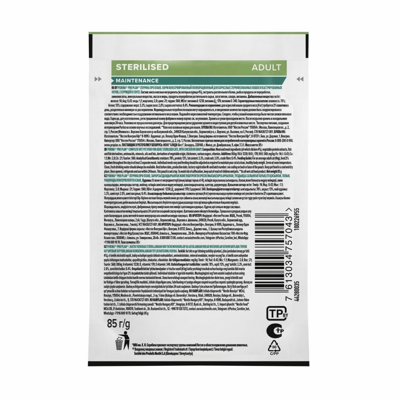 Корм для кошек Влажный корм "PRO PLAN" для стерилизованных кошек с курицей 85гр.*26шт.