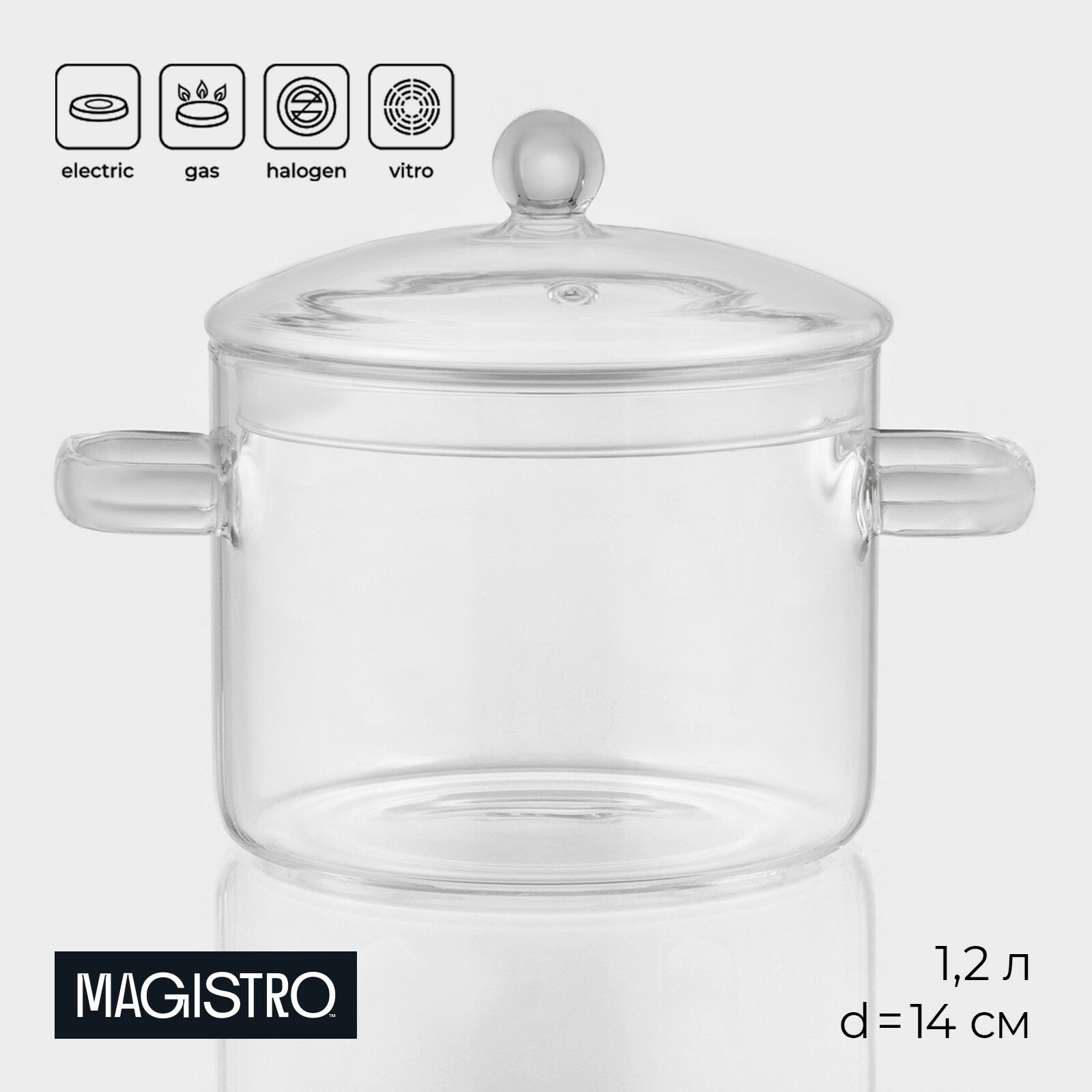 Кастрюля огнеупорная Magistro Лия, 1,2 л, 20х14 см, цвет прозрачный