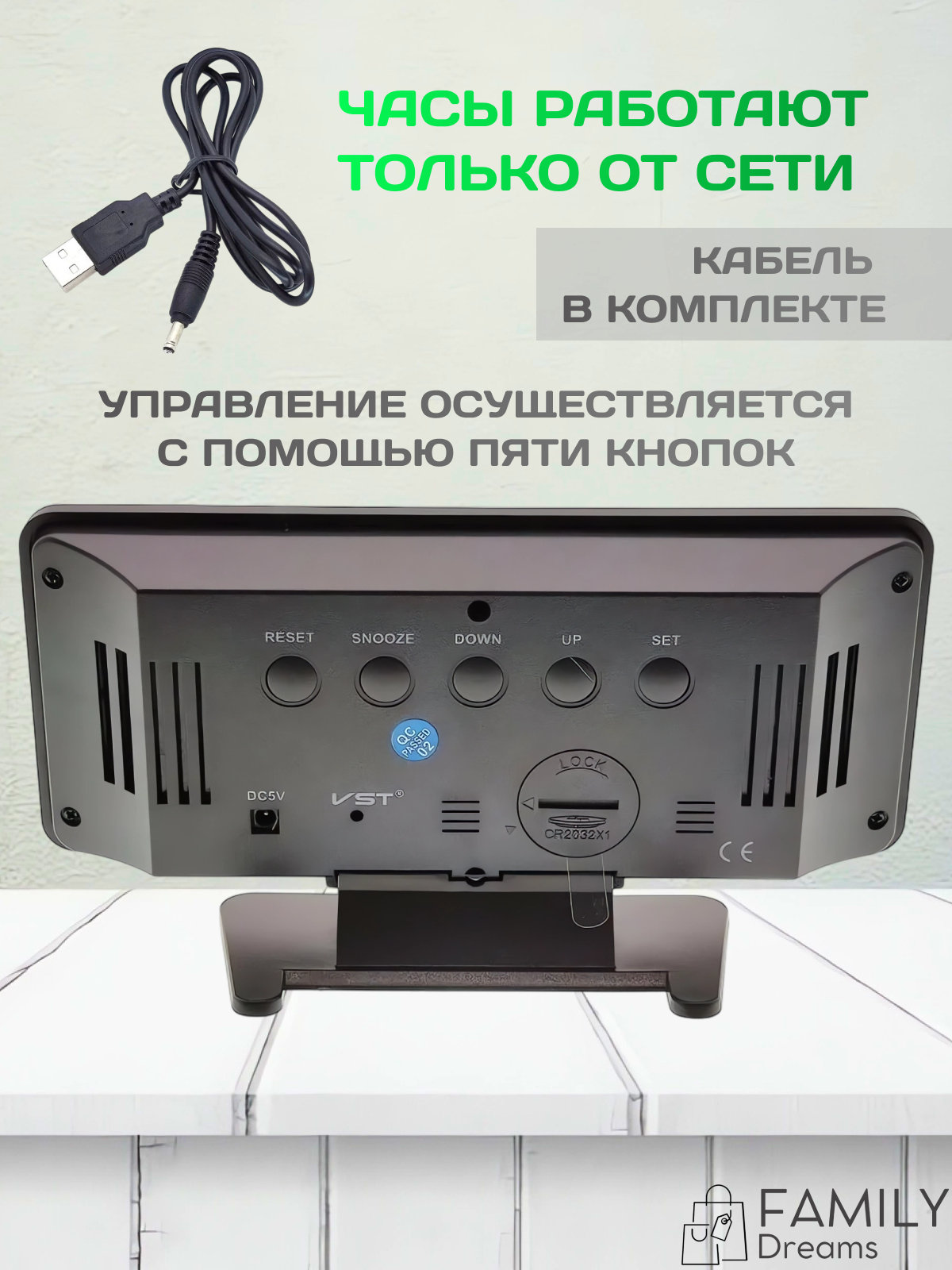 Часы электронные настольные VST-888Y, с зеленой подсветкой