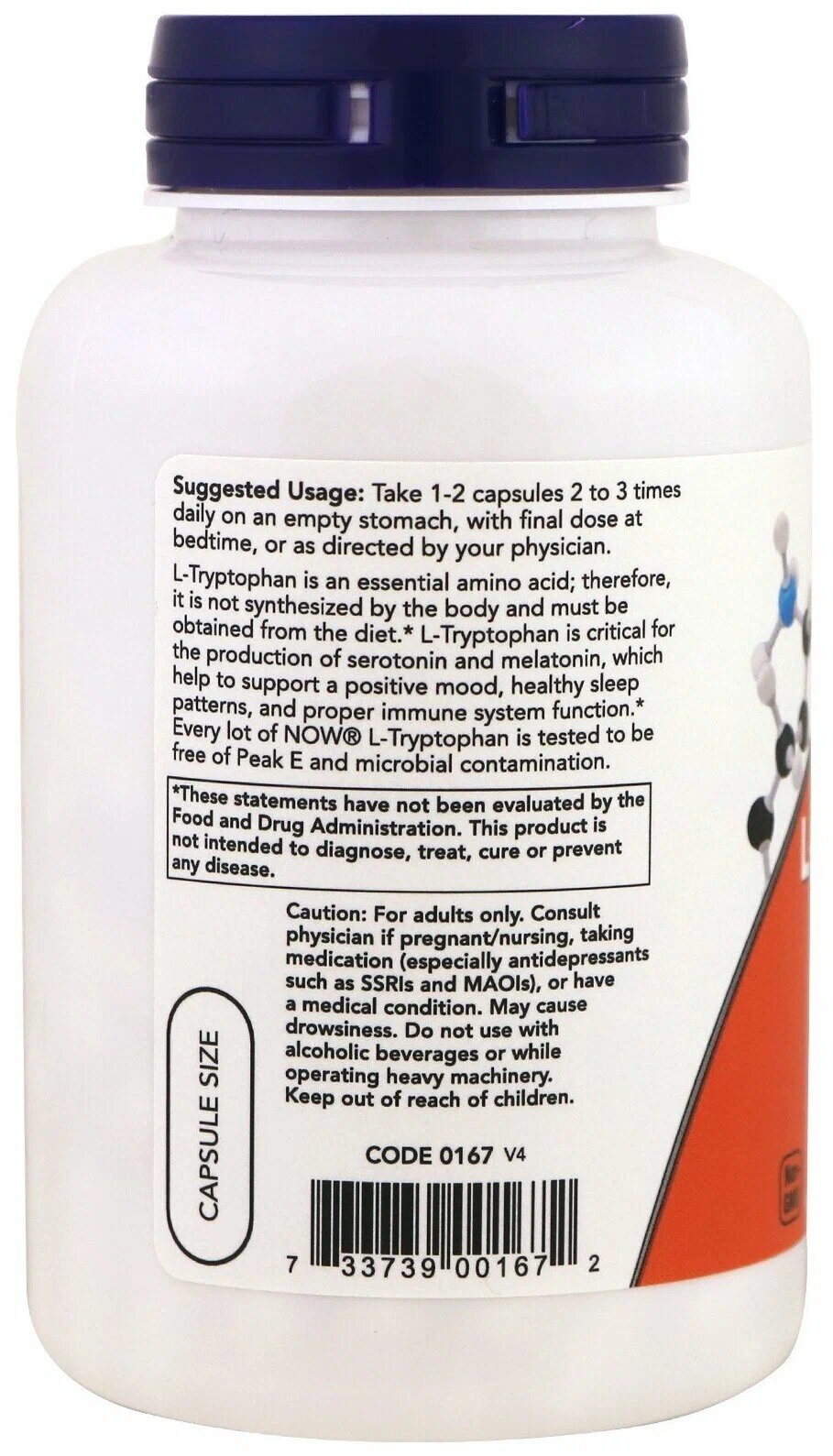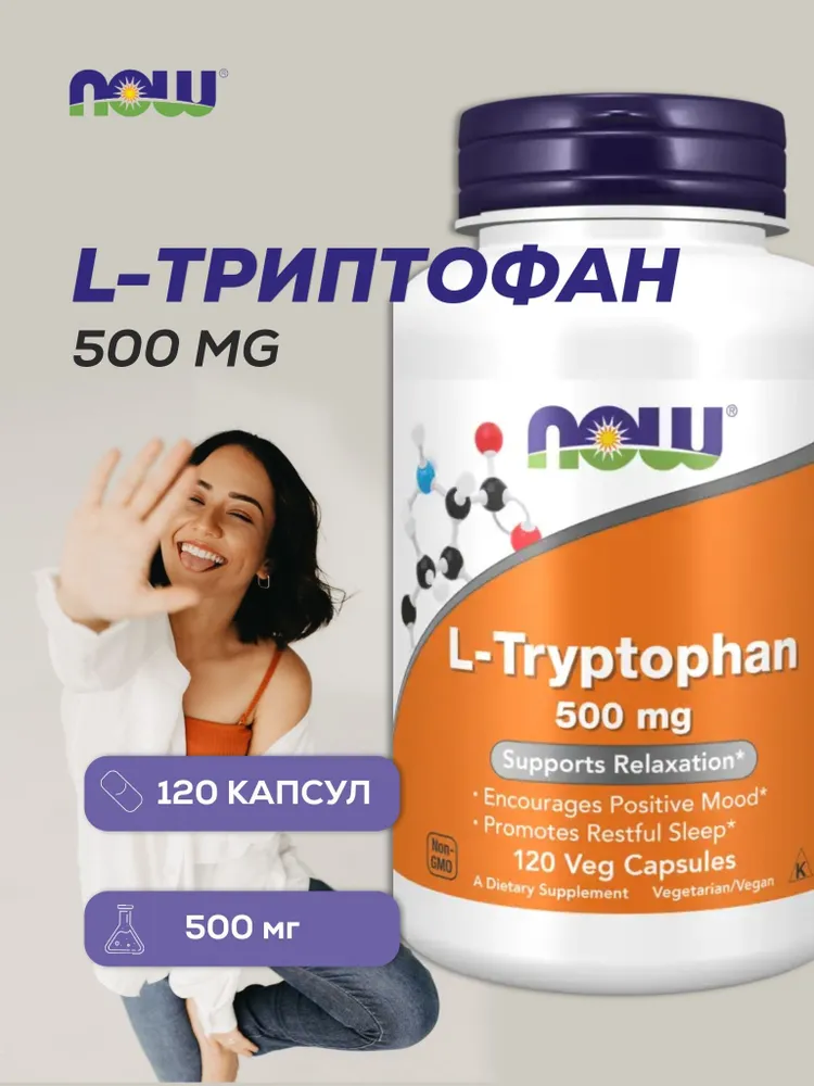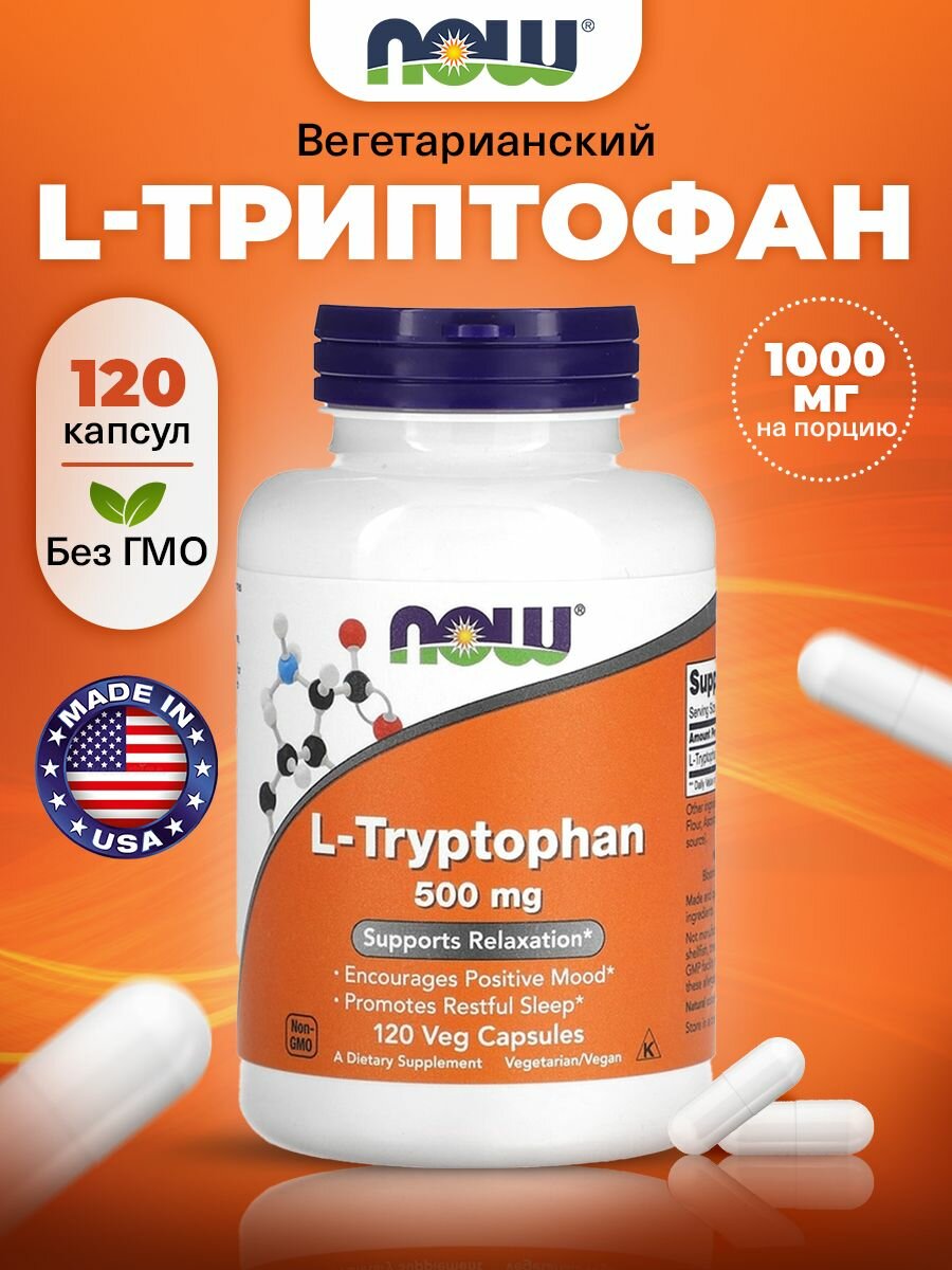Аминокислоты NOW L-Tryptophan Триптофан 500 мг 120 шт
